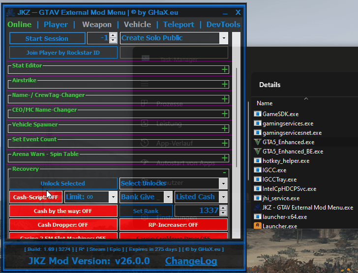 JKZ — GTAV External Mod Menu